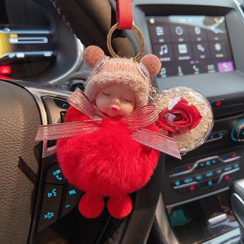 This is a stylish and cute furry keychain, Cute sleeping baby pattern, looks quite lovely.Fluffy ball has a great soft hand feeling.
