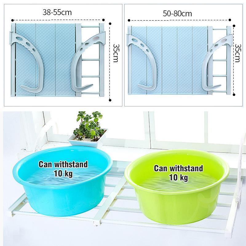 The multi-function window sill drying rack is easy to use and versatile and is used in the balcony kitchen and bathroom. The hook position is adjustable to be fixed to most window balconies. Durable and durable with high-quality carbon steel, it can support up to 20 kg. Strong and sturdy.
