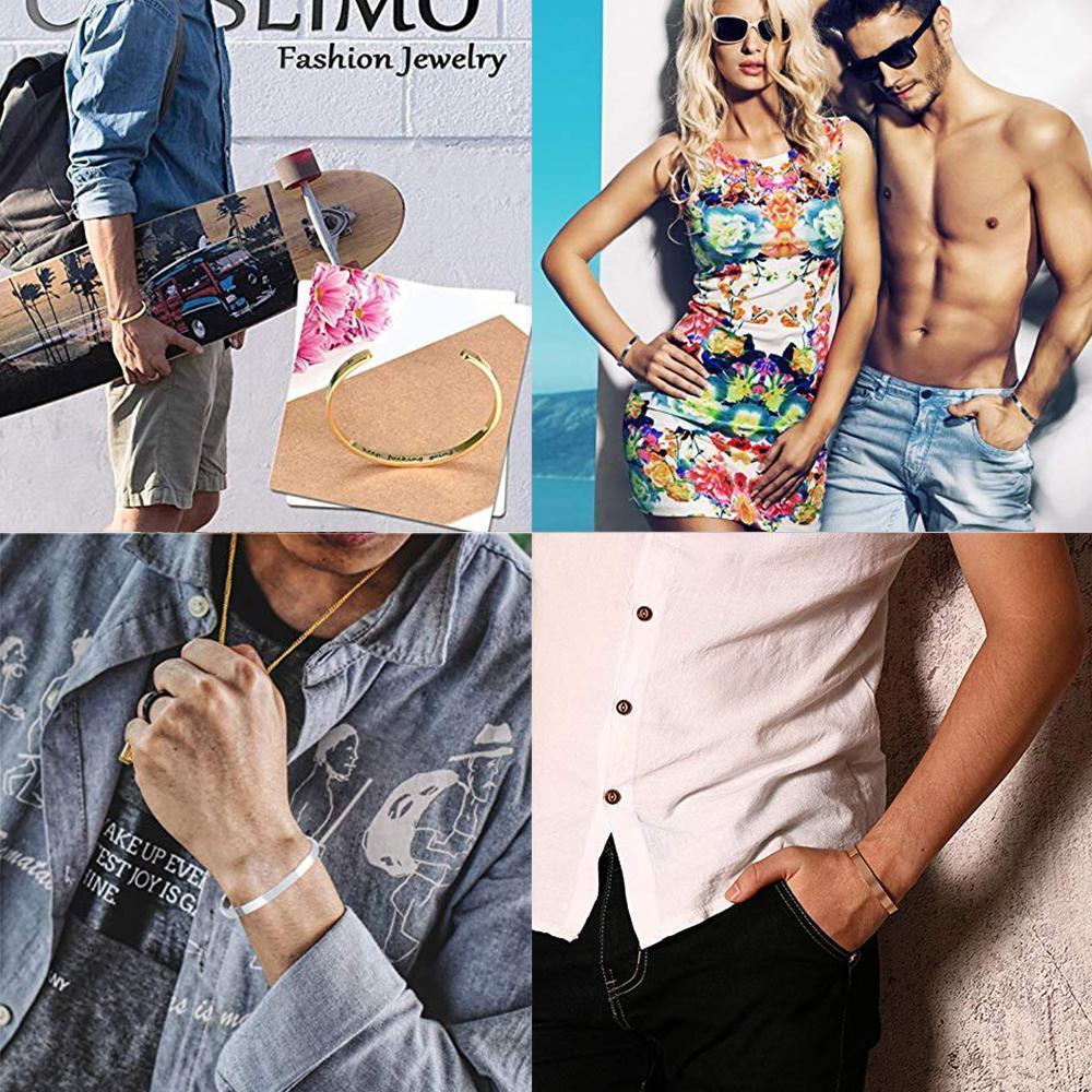 - The cuff bracelet is made of 316L stainless steel, stronger and more durable, will never fade, rust, tarnish, corrode, stain, hypoallergenic and Nickel free, 100% harmony for the wrist, health, and your family, never turn skin green.