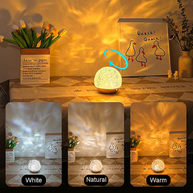 This table lamp is designed with special 3D technology to create a stunning water ripple light effect.